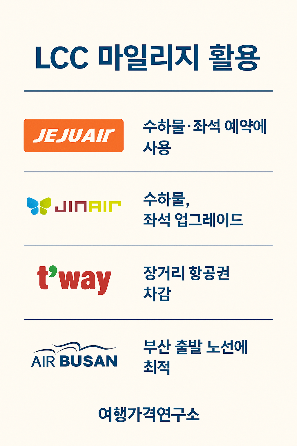 👉 LCC는 “빠르게 모아 바로바로 소진하는 전략”이 최적의 방법입니다.